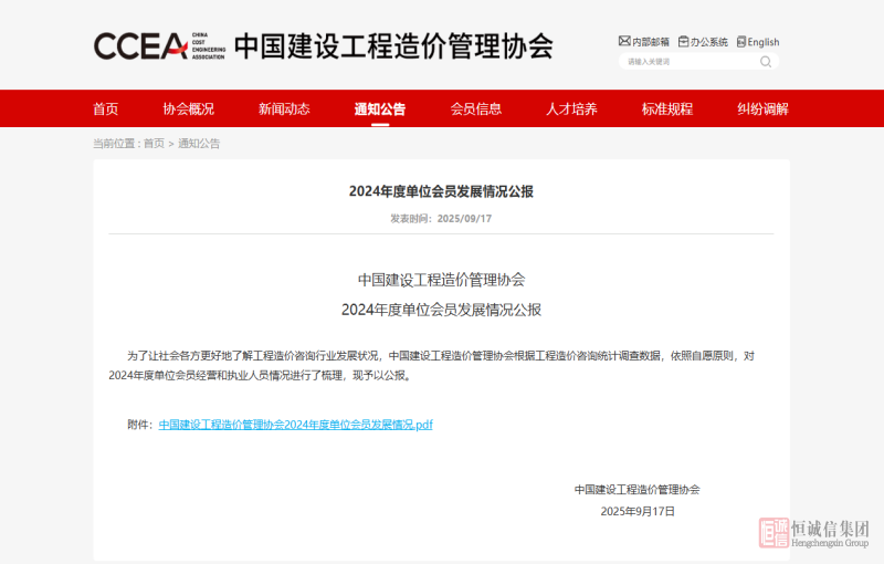 2024年度全國(guó)造價(jià)咨詢百?gòu)?qiáng)企業(yè)公布 | 北京恒誠(chéng)信蟬聯(lián)全國(guó)前十